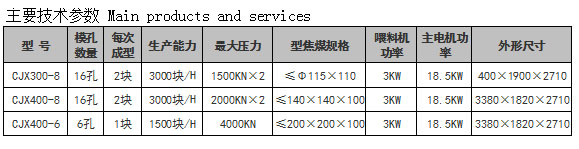 本机是用于生产焦煤的压制成型设备,可用于焦炭、焦粉、煤粉等多种材料为主要原料的型焦煤生产。其设计结构合理、性能先进可靠,产量高、能耗低,操作维修方便。